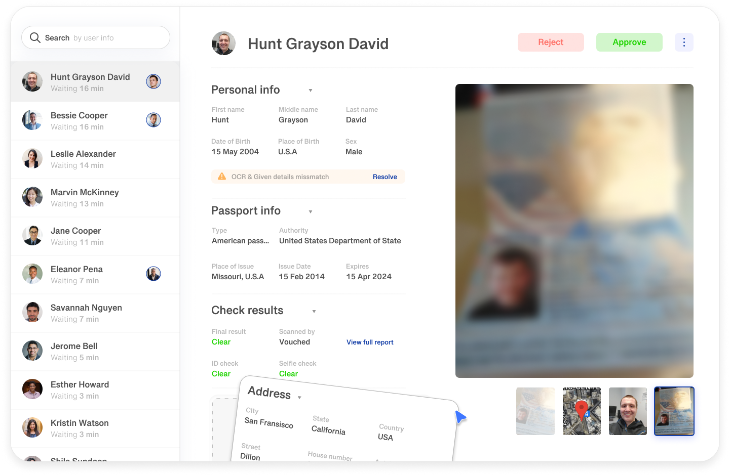 - A case management dashboard to approve, reject or classify users manually.