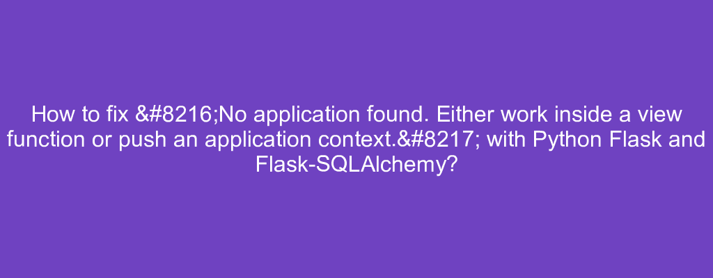 Sometimes, we want to fix ‘No application found. Either work inside a view function or push an application context.’ with Python Flask and Flask-SQLAlchemy.