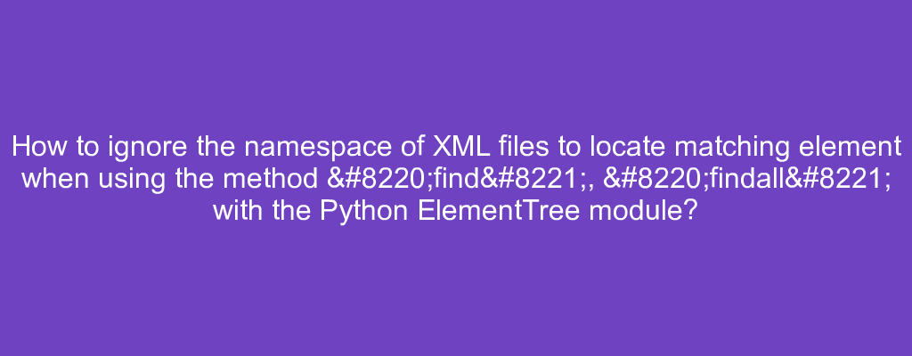 Sometimes, we want to ignore the namespace of XML files to locate matching element when using the method "find", "findall" with the Python ElementTree module.