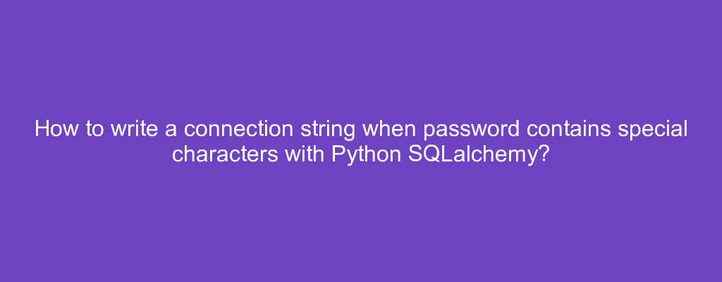 In this article, we’ll look at how to write a connection string when password contains special characters with Python SQLalchemy.