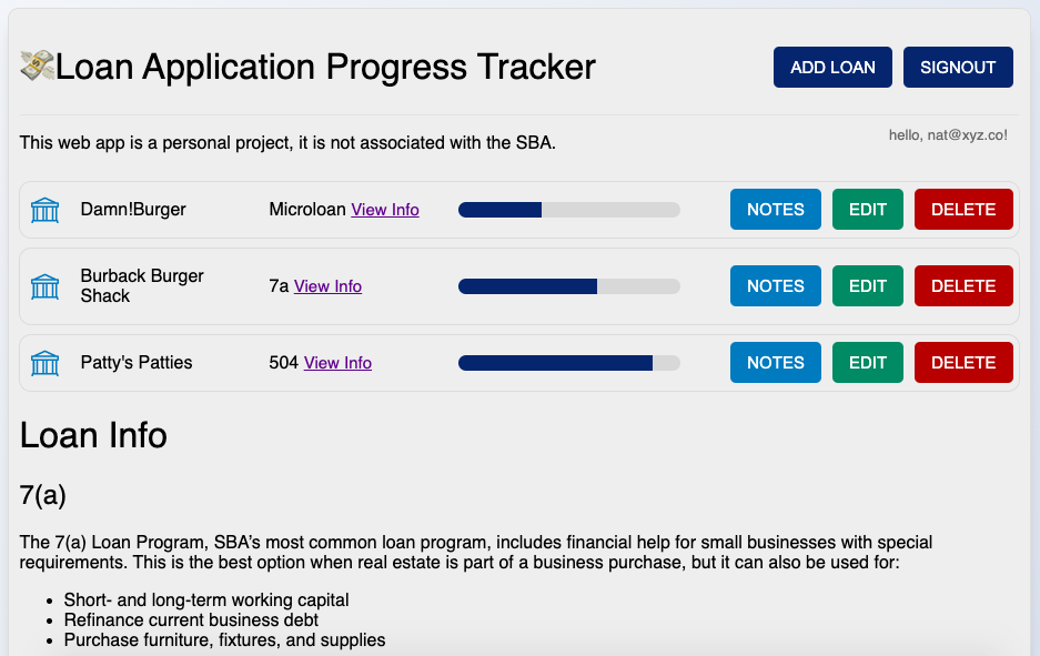 live atCRUD application where users can create an account, log in, and keep track of the progress and important details for multiple loan applications.